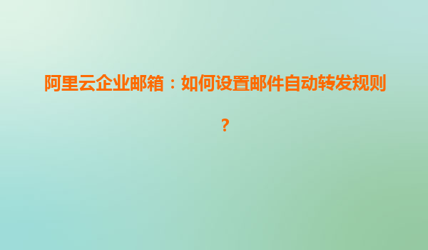 阿里云企業(yè)郵箱是一款功能強(qiáng)大的郵件服務(wù),它為企業(yè)用戶提供了高效、安全的郵件收發(fā)體驗(yàn)。在日常的工作中,許多人可能需要將郵箱中的某些郵件自動(dòng)轉(zhuǎn)發(fā)到其他郵箱,這樣可以確保重要郵件不會錯(cuò)過,也可以提高工作效率。本文將詳細(xì)介紹如何在阿里云企業(yè)郵箱中設(shè)置郵件自動(dòng)轉(zhuǎn)發(fā)規(guī)則,幫助企業(yè)用戶更好地利用這一功能。