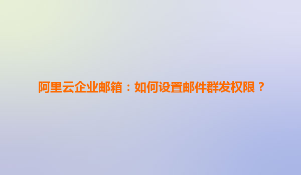 如何在阿里云企業(yè)郵箱中設置郵件群發(fā)權(quán)限