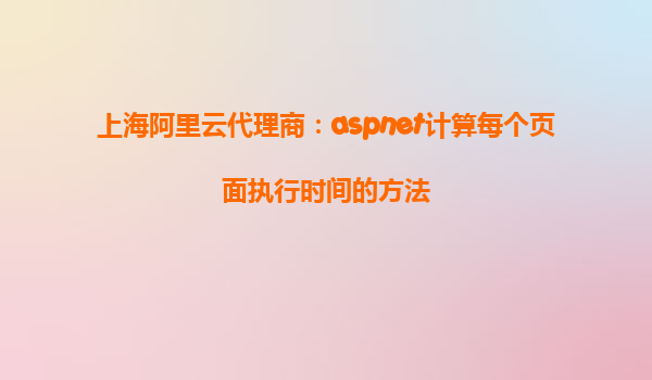 上海阿里云代理商:ASP.NET計算每個頁面執(zhí)行時間的方法