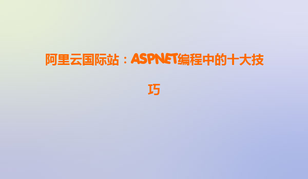 阿里云國際站:ASPNET編程中的十大技巧