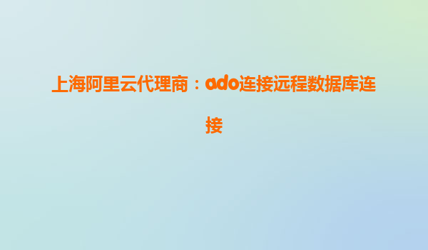 使用上海阿里云代理商ADO連接遠(yuǎn)程數(shù)據(jù)庫的優(yōu)勢(shì)與實(shí)踐