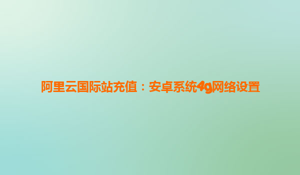 阿里云國際站充值:安卓系統(tǒng)4G網(wǎng)絡(luò)設(shè)置指南