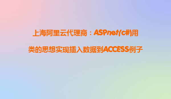 ASP.NET(C#)實(shí)現(xiàn)插入數(shù)據(jù)到ACCESS數(shù)據(jù)庫(kù)的示例:結(jié)合阿里云與阿里云代理商的優(yōu)勢(shì)
