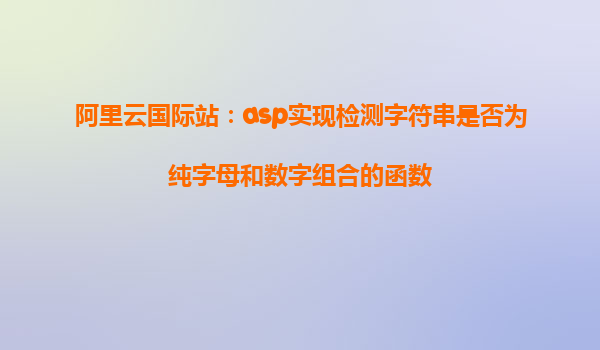 在現(xiàn)代軟件開發(fā)中,經(jīng)常需要對用戶輸入的數(shù)據(jù)進行驗證,確保其符合特定的格式要求。特別是對于需要確保輸入僅包含字母和數(shù)字的場景,開發(fā)者常常需要實現(xiàn)一種方法來進行字符串檢測。本文將介紹如何在ASP中實現(xiàn)一個檢測字符串是否為純字母和數(shù)字組合的函數(shù),并結(jié)合阿里云的優(yōu)勢,探討如何利用阿里云的強大功能提升開發(fā)效率和性能。