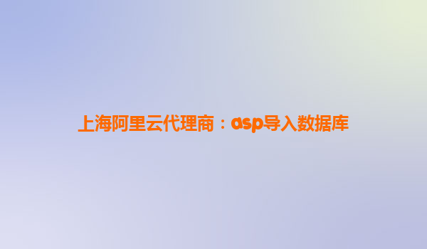 上海阿里云代理商:ASP導(dǎo)入數(shù)據(jù)庫