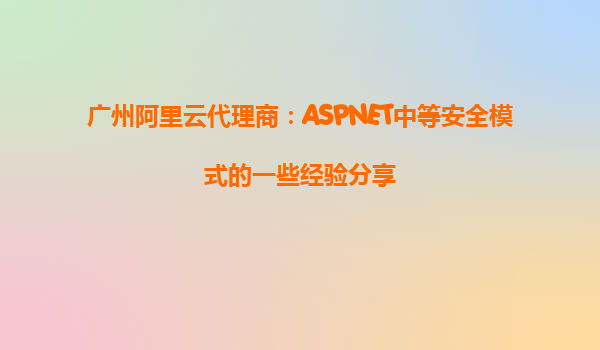 廣州阿里云代理商:ASP.NET中等安全模式的一些經(jīng)驗分享