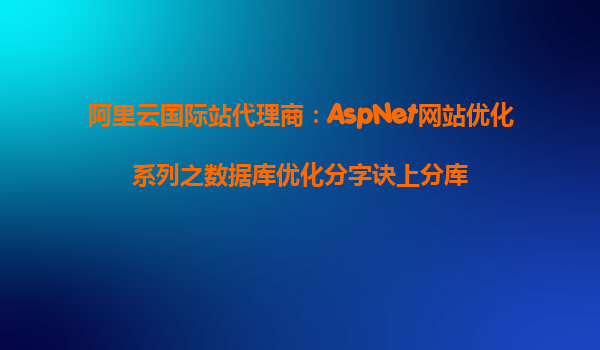 阿里云國際站代理商:AspNet網站優(yōu)化系列之數(shù)據庫優(yōu)化分字訣上分庫