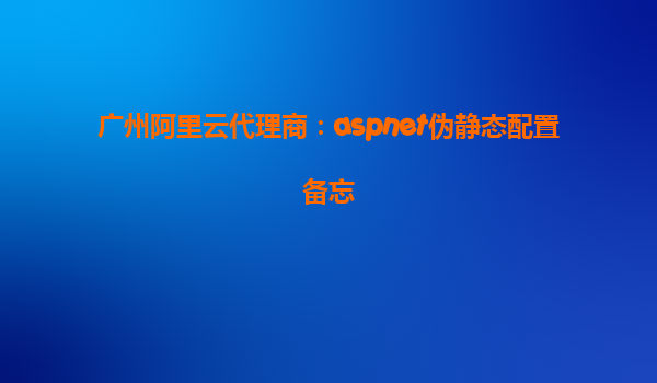 廣州阿里云代理商:ASP.NET偽靜態(tài)配置備忘