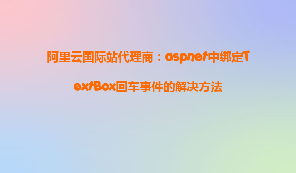 ASP.NET中綁定TextBox回車事件的解決方法:結合阿里云代理商的優(yōu)勢