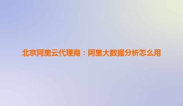 北京阿里云代理商:阿里大數(shù)據(jù)分析怎么用