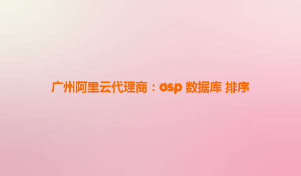 廣州阿里云代理商:ASP數(shù)據(jù)庫排序優(yōu)勢(shì)解析