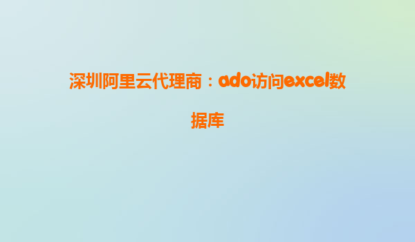 深圳阿里云代理商:ADO訪問Excel數(shù)據(jù)庫