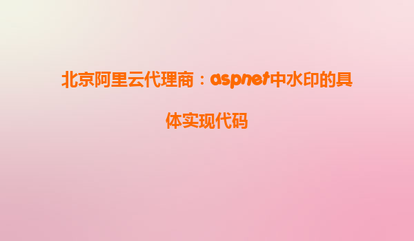阿里云代理商:ASP.NET中水印的實現(xiàn)與優(yōu)勢
