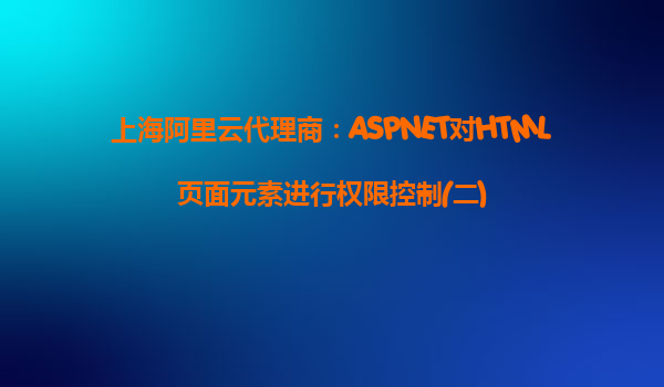 上海阿里云代理商:ASP.NET對(duì)HTML頁面元素進(jìn)行權(quán)限控制(二)