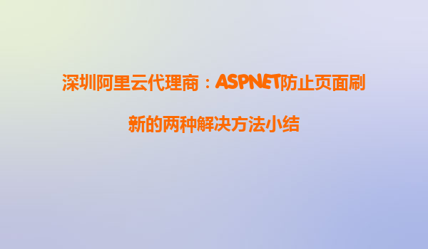 深圳阿里云代理商:ASPNET防止頁面刷新的兩種解決方法小結(jié)
