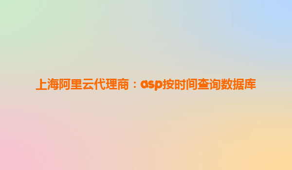 上海阿里云代理商:ASP按時(shí)間查詢數(shù)據(jù)庫的優(yōu)勢(shì)與應(yīng)用