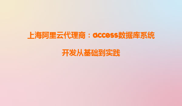 上海阿里云代理商:Access數(shù)據(jù)庫系統(tǒng)開發(fā)從基礎(chǔ)到實踐