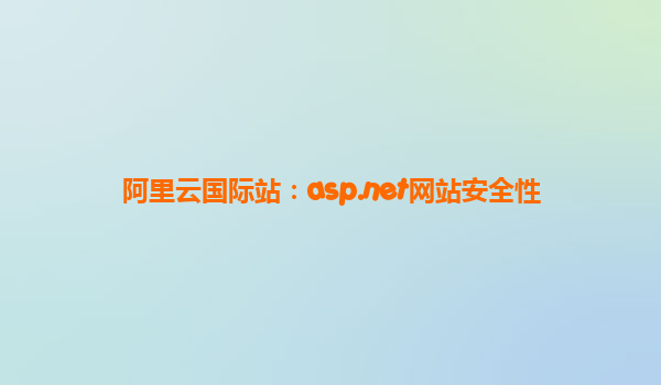 阿里云國際站:ASP.NET網(wǎng)站安全性