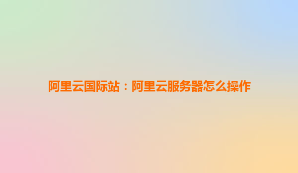 阿里云國際站:阿里云服務(wù)器怎么操作