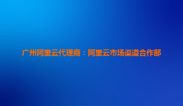 廣州阿里云代理商:阿里云市場渠道合作部