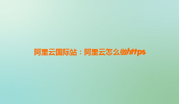 阿里云國際站:阿里云怎么做HTTPS