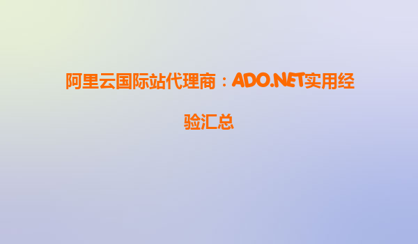 阿里云國際站代理商:ADO.NET實(shí)用經(jīng)驗(yàn)匯總