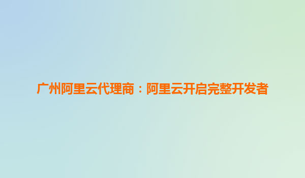 廣州阿里云代理商:阿里云開(kāi)啟完整開(kāi)發(fā)者體驗(yàn)