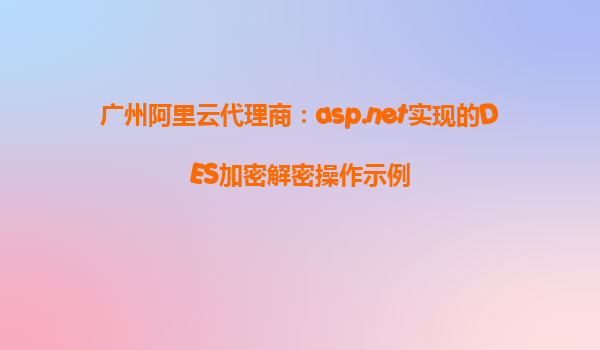 基于ASP.NET實(shí)現(xiàn)DES加密解密操作示例與阿里云優(yōu)勢結(jié)合