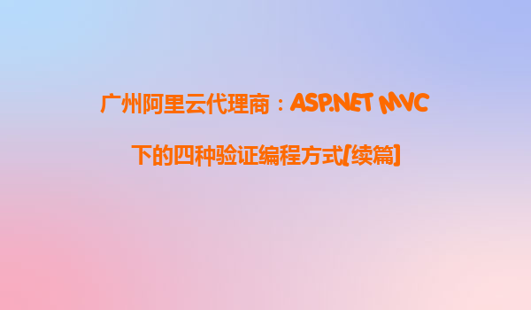 廣州阿里云代理商:ASP.NET MVC下的四種驗(yàn)證編程方式[續(xù)篇]