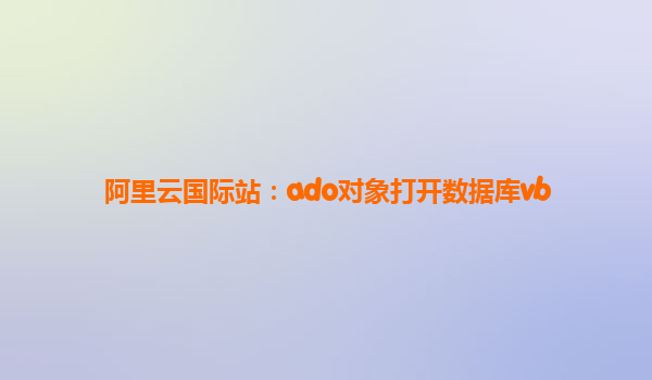 阿里云國(guó)際站與ADO對(duì)象在VB中打開(kāi)數(shù)據(jù)庫(kù)的優(yōu)勢(shì)與應(yīng)用