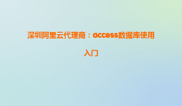 深圳阿里云代理商:Access數(shù)據(jù)庫使用入門
