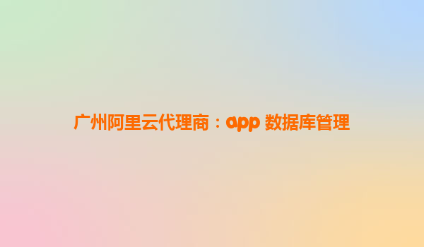 廣州阿里云代理商:APP數(shù)據(jù)庫管理
