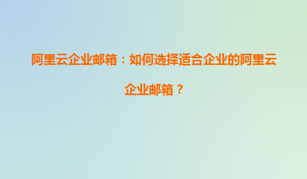 如何選擇適合企業(yè)的阿里云企業(yè)郵箱?