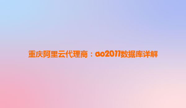 重慶阿里云代理商:AO2011數(shù)據(jù)庫(kù)詳解