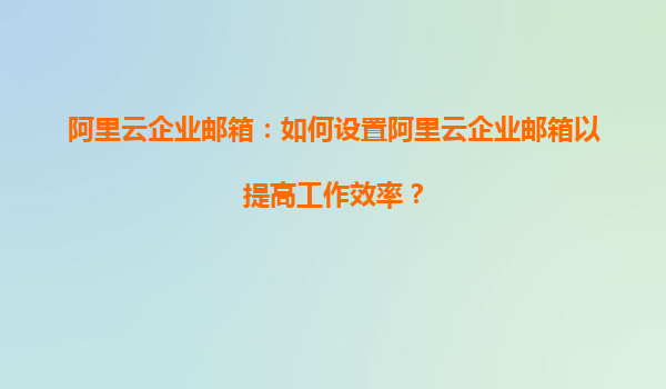 如何設(shè)置阿里云企業(yè)郵箱以提高工作效率?