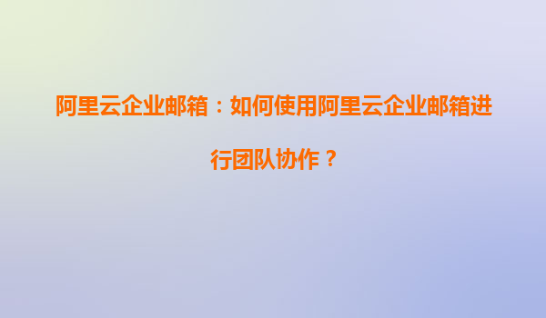 阿里云企業(yè)郵箱:如何使用阿里云企業(yè)郵箱進行團隊協(xié)作?