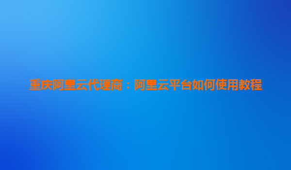 重慶阿里云代理商:阿里云平臺如何使用教程