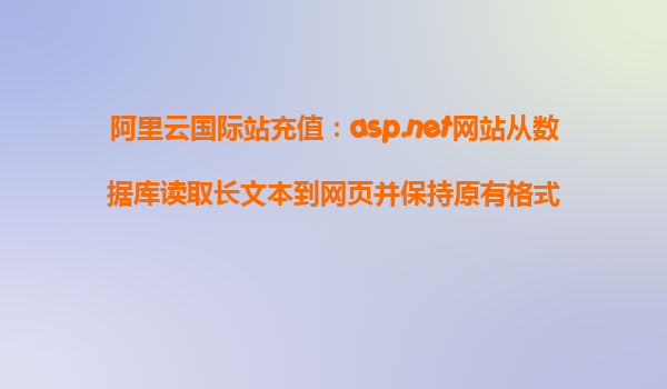 在ASP.NET網(wǎng)站中從數(shù)據(jù)庫讀取長文本并保持原有格式:結(jié)合阿里云的優(yōu)勢