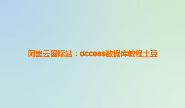 阿里云國際站:Access數(shù)據(jù)庫教程土豆