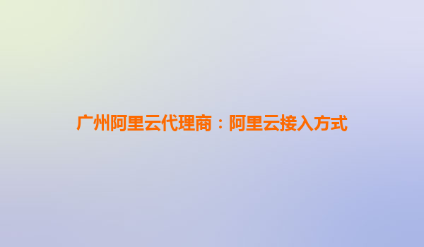 廣州阿里云代理商:阿里云接入方式