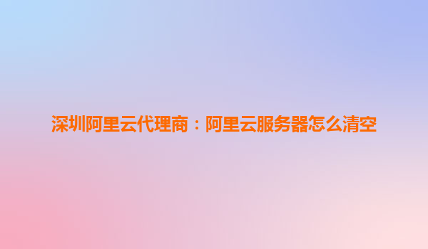 深圳阿里云代理商:阿里云服務器怎么清空