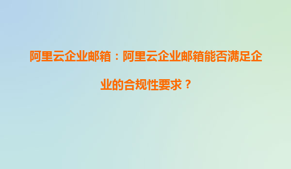 阿里云企業(yè)郵箱:滿足企業(yè)合規(guī)性要求的最佳選擇