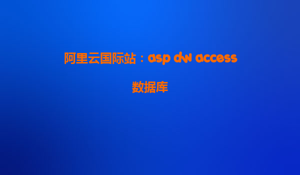 如何通過阿里云國際站實現(xiàn)ASP、DW和Access數(shù)據(jù)庫的高效應用