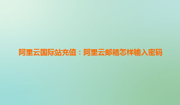 如何使用阿里云國(guó)際站充值與阿里云郵箱輸入密碼操作指南