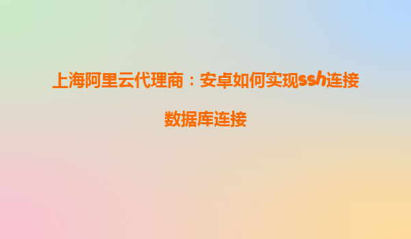 上海阿里云代理商:安卓如何實現(xiàn)SSH連接數(shù)據(jù)庫