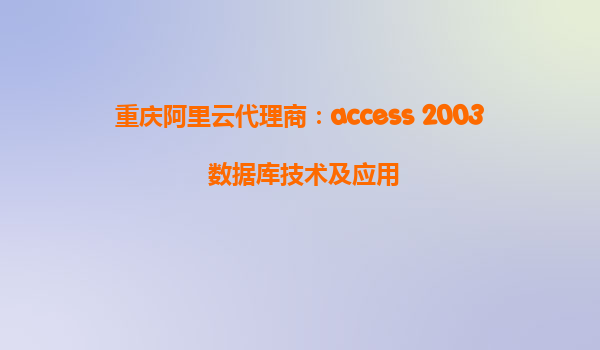重慶阿里云代理商:Access 2003數(shù)據(jù)庫技術(shù)及應(yīng)用