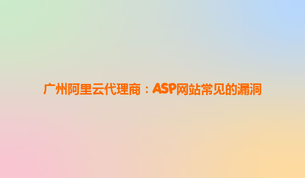 ASP網(wǎng)站常見(jiàn)的漏洞及如何通過(guò)阿里云解決