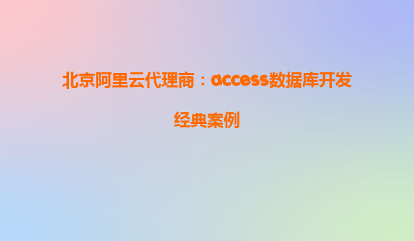 北京阿里云代理商:Access數(shù)據(jù)庫(kù)開(kāi)發(fā)經(jīng)典案例