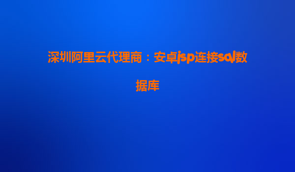 深圳阿里云代理商:安卓JSP連接SQL數(shù)據(jù)庫