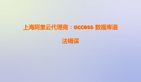 上海阿里云代理商:Access 數(shù)據(jù)庫(kù)語(yǔ)法錯(cuò)誤解析與阿里云優(yōu)勢(shì)分析